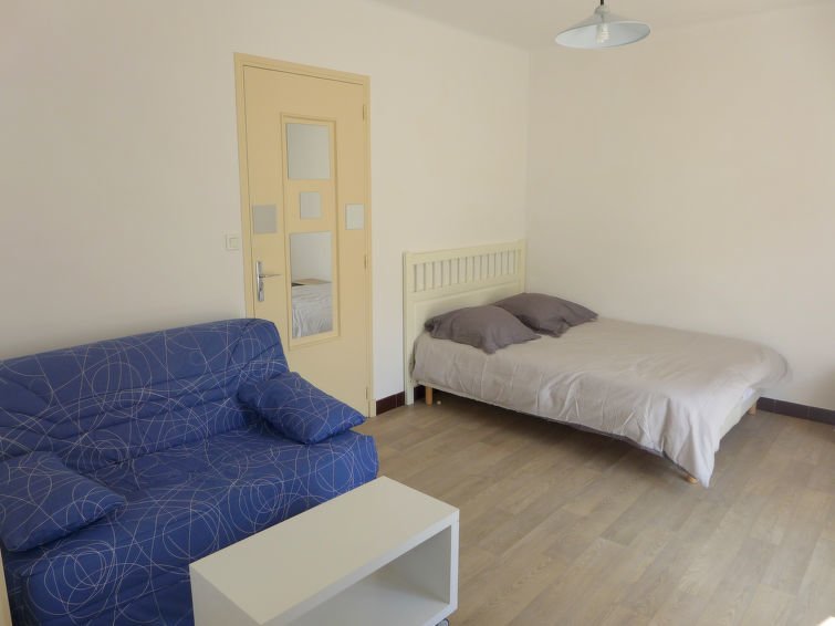1-huoneen huoneisto, 31 m2, 3. kerroksessa. Olo/ruokailuhuone, 1 vuodesohva kahdelle (1 x 140 cm), 1 kapea parisänky (1 x 140 cm), TV ja ilmastointi. Avoin keittiö (2 keittolevyä, mikroaaltouuni, pakastin, kahvinkeitin). Suihku/WC. Pieni parveke. Käytettävissä: pesukone. Pysäköintipaikka (aidattu). Huomioitavaa: huoneisto kadun/tien puolella. 1 pieni lemmikki/koira sallittu…. Lue lisää »