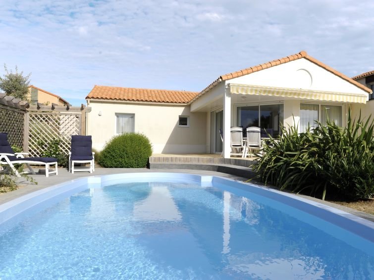 5-room ”Villa Sophora”, house, detached, for 8 people, 105 m2, on the ground floor, comfortable and modern furnishings. Living/dining room with satellite TV, DVD and hi-fi system. Smoking not allowed. Internet (Wireless LAN [WLAN]). Sleeping room with 1 double bed. Sleeping room with 2 single beds. Sleeping room with 2 bunk beds. Sleeping room with 1 double bed. Open kitchen with 4 hot plates, micro wave, oven, dishwasher and deep freezer. Food service: bread roll service (extra). Bath-room and separate WC. Terrace 15 m2, terrace furniture, 2 deck chairs. Other equipment: iron, washing machine. The photo shows only an example of holiday rentals. All villas are individually furnished…. Lue lisää »