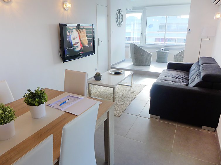 1-huoneen huoneisto, 32 m2, 7. kerroksessa. Peruskorjattu vuonna 2015, mukavasti ja uudenaikaisesti sisustettu: olo/ruokailuhuone, 1 vuodesohva kahdelle (140 cm), TV (litteänäyttö). Alkovi, 1 x 2 kerrossänky (90 cm). Keittiö (uuni, astianpesukone, 3 induktioliesi, mikroaaltouuni, pakastin). Suihku, erillinen WC, kaksoispesuallas. Ilmastointilaite. Terassi 8 m2, katettu, lounaaseen. Terassikalusteita. Kaunis etäinen näkymä merelle ja maaseudulle. Käytettävissä: pesukone. Internet ( Langaton LAN [WLAN] , ilmainen). Pysäköintipaikka…. Lue lisää »
