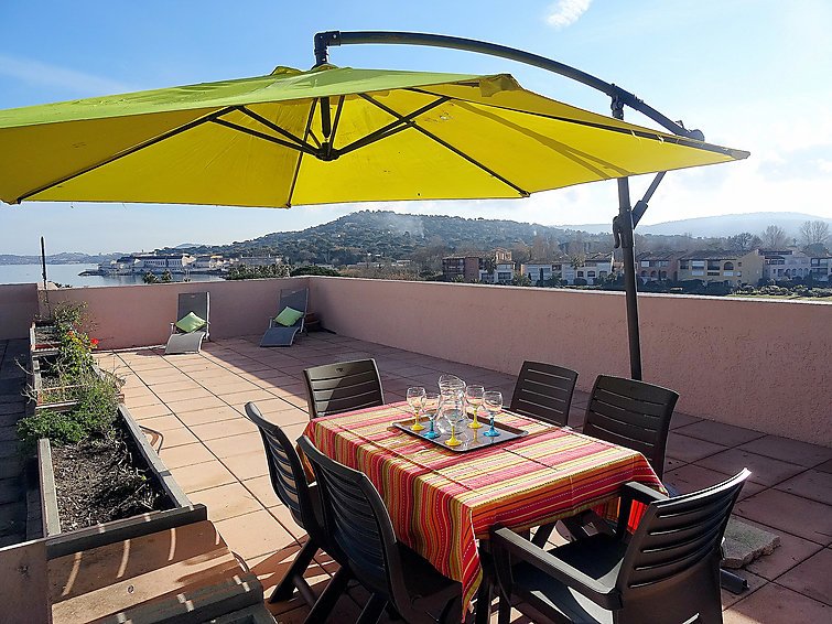 3-huoneen huoneisto, 45 m2, 4. kerroksessa. Avara, mukavasti sisustettu: olo/ruokailuhuone, 1 vuodesohva kahdelle ja TV (litteänäyttö). Uloskäynti terassille. 1 huone, 2 vuodetta. Sisääntulo, 1 x 2 kerrossänky. Avoin keittiö (4 keittolevyä, uuni, astianpesukone, mikroaaltouuni, pakastin). Kylpyhuone, suihku/WC. Iso terassi 60 m2. Terassikalusteita, sähkögrilli. Ihastuttava näkymä merelle ja uima-altaalle. Käytettävissä: pesukone, hiustenkuivaaja. Pysäköintipaikka…. Lue lisää »