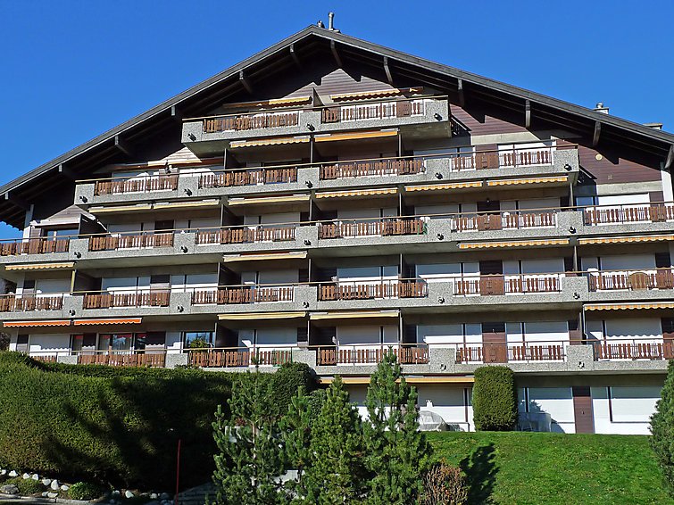 2-huoneen huoneisto, 47 m2, 3. kerroksessa. Olo/ruokailuhuone, 1 ransk. komerosänky (160 cm), kaapeli TV (litteänäyttö). 1 huone, 2 vuodetta. Keittiönurkkaus (2 keittolevyä, astianpesukone, mikroaaltouuni, kahvinkeitin). Kylpy/WC. Parveke, etelään. Terassikalusteita. Kaunis näkymä vuorille. Käytettävissä: lastensänky alle 2 vuotiaalle, hiustenkuivaaja. Internet ( Langaton LAN [WLAN] , ilmainen). Autotalli n:o 23, korkeus 210 cm. Huomioitavaa: savuton huoneisto. Enintään 1 lemmikki/koira sallittu…. Lue lisää »