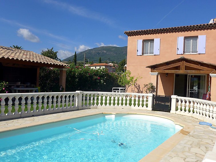 4-huoneen talo, 105 m2, 2 tasossa. Mukavasti sisustettu: olo/ruokailuhuone, TV ja ilmastointi. Uloskäynti terassille. Keittiönurkkaus (5 keittolevyä, uuni, astianpesukone, mikroaaltouuni, kahvinkeitin). Erillinen WC. Yläkerrassa: 3 huonetta, kaikissa huoneissa, 1 kapea parisänky (140 cm, pituus 190 cm). Kylpyhuone, erillinen WC, kaksoispesuallas. Näkymä vuorille, uima-altaalle ja puutarhaan. Käytettävissä: pesukone, silitysrauta, syöttötuoli, lastensänky. Internet ( Langaton LAN [WLAN] , ilmainen). Pysäköintipaikka (4 autolle). 1 lemmikki/koira sallittu…. Lue lisää »