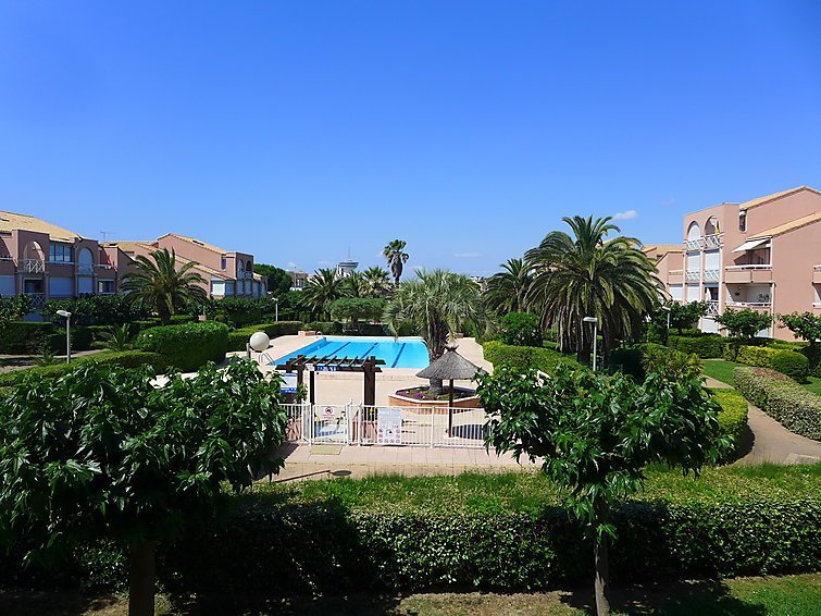 2-huoneen huoneisto, 30 m2, 1. kerroksessa, suunta länteen. Täysin peruskorjattu vuonna 2015, mukavasti ja uudenaikaisesti sisustettu: olo/ruokailuhuone, 1 vuodesohva kahdelle (140 cm), TV (litteänäyttö). 1 pieni huone, 1 kapea parisänky (140 cm). Avoin keittiö (2 keraaminen keittotaso, mikroaaltouuni, pakastin). Suihku/WC. Ilmastointilaite. Näkymä uima-altaalle ja puutarhaan. Käytettävissä: pesukone. Pysäköintipaikka. Enintään 1 pieni lemmikki/koira sallittu…. Lue lisää »