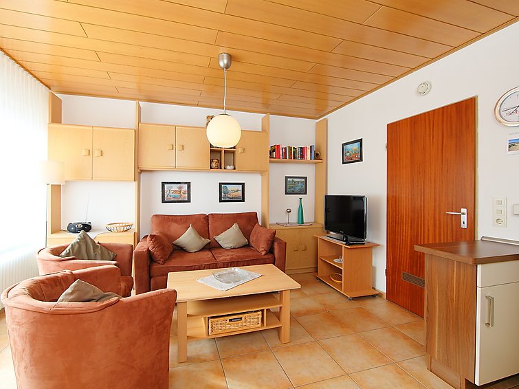 ”Leuchtfeuer”, 3-huoneen huoneisto, 40 m2, 2 tasossa, ylemmässä kerroksessa. Kauniisti ja viihtyisästi sisustettu: olo/ruokailuhuone, kaapeli TV (litteänäyttö), radio ja CD. 1 kahden hengen huone, jossa viisto katto. Keittiönurkkaus (uuni, 4 keraaminen keittotaso, mikroaaltouuni, kahvinkeitin). Suihku/WC. Kattokerroksessa: 1 huone, jossa viisto katto, 2 vuodetta ja kaapeli TV. Parveke 5 m2. Parvekekalusteita. Käytettävissä: syöttötuoli (lisämaksu), hiustenkuivaaja. Internet ( Langaton LAN [WLAN] , ilmainen). Huomioitavaa: savuton huoneisto. Enintään 1 lemmikki/koira sallittu…. Lue lisää »