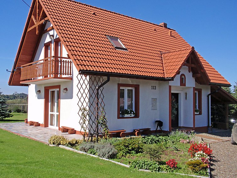 4-huoneen talo, 100 m2, 2 tasossa. Kauniisti ja viihtyisästi sisustettu: avoin olo/ruokailuhuone, 1 vuodesohva, avotakka ja satelliitti TV. Uloskäynti puutarhaan. Avoin keittiö (4 keittolevyä, uuni, mikroaaltouuni, kahvinkeitin). Kylpy/WC. Yläkerrassa: 1 huone, jossa viisto katto 8 m2, suunta pohjoiseen, 2 vuodetta (90 cm, pituus 200 cm), radio. 2 huonetta, jossa viisto katto 15 m2, suunta etelään, kaikissa huoneissa 2 vuodetta (90 cm, pituus 200 cm), radio. Uloskäynti parvekkeelle. Suihku/WC. Sähkölämmitys (lisämaksu). Parveke, etelään, terassi 20 m2, katettu, pohjoiseen. Terassikalusteita, lepotuoleja, varasto. Kaunis näkymä puutarhaan ja maaseudulle. Käytettävissä: pesukone, puut (ilmainen). Internet ( Langaton LAN [WLAN] ). Pysäköintipaikka talon vieressä. Huomioitavaa: savuton talo…. Lue lisää »