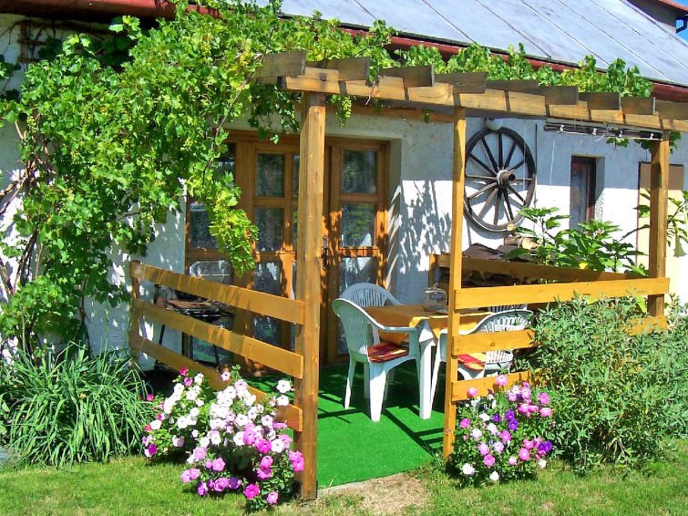 2-huoneen talo, 56 m2. Käytännöllisesti ja kauniisti sisustettu: olo/ruokailuhuone, satelliitti TV ja radio. Uloskäynti puutarhaan, uima-altaalle. Keittiönurkkaus sisäänkäynnin yhteydessä (4 keittolevyä, pienoisuuni, mikroaaltouuni, pakastin, grilli, kahvinkeitin). Suihku/WC. Sähkölämmitys. Yläkerrassa: (jyrkät portaat) 2 huonetta, jossa viisto katto, kaikissa huoneissa 2 vuodetta. Pysäköintipaikka. Enintään 1 pieni lemmikki/koira sallittu. Kaakeliuuni olohuoneessa. Jyrkät kierreportaat yläkertaan. Yläkerrassa erittäin viisto katto…. Lue lisää »