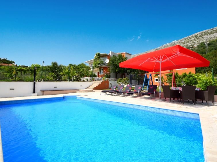 5-huoneen talo, 195 m2, 2 tasossa, suunta etelään. 1 huone, 1 parisänky (2 x 90 cm, pituus 200 cm), suihku/WC ja TV (litteänäyttö). Yläkerrassa: olo/ruokailuhuone, 35 m2, satelliitti TV (litteänäyttö), ilmastointi. Uloskäynti terassille. 1 huone, 1 parisänky (2 x 80 cm, pituus 200 cm). Uloskäynti parvekkeelle. 1 huone, 1 kapea parisänky (180 cm, pituus 200 cm). 1 huone, 1 vuode (120 cm, pituus 200 cm). Uloskäynti parvekkeelle. Avoin keittiö (uuni, astianpesukone, 4 keraaminen keittotaso, mikroaaltouuni, pakastin, kahvinkeitin). Uloskäynti terassille. Suihku/WC. 2 parveketta 2 m2, terassi 15 m2 osittain katettu. Terassikalusteita, lepotuoleja. Näkymä maaseudulle. Käytettävissä: lastensänky. Internet ( Langaton LAN [WLAN] , ilmainen)…. Lue lisää »