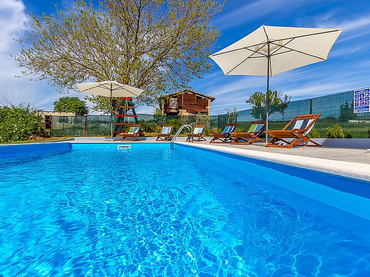 5-huoneen talo, 110 m2, 2 tasossa. Olo/makuuhuone, 1 kapea parisänky (160 cm, pituus 200 cm), ruokapöytä, pienoiskeittiö, satelliitti TV ja ilmastointi. Olo/ruokailuhuone, avotakka, satelliitti TV, DVD ja ilmastointi. Uloskäynti terassille. Avoin keittiö (4 keittolevyä, uuni, mikroaaltouuni, pakastin, kahvinkeitin). Suihku/WC. Yläkerrassa: 2 huonetta, kaikissa huoneissa, 1 kapea parisänky (160 cm, pituus 200 cm). 1 huone, 1 vuode (90 cm, pituus 200 cm). Suihku/WC. Terassi 40 m2, katettu. Terassikalusteita, lepotuoleja. Käytettävissä: Internet ( Langaton LAN [WLAN] , ilmainen). 1 lemmikki/koira sallittu…. Lue lisää »
