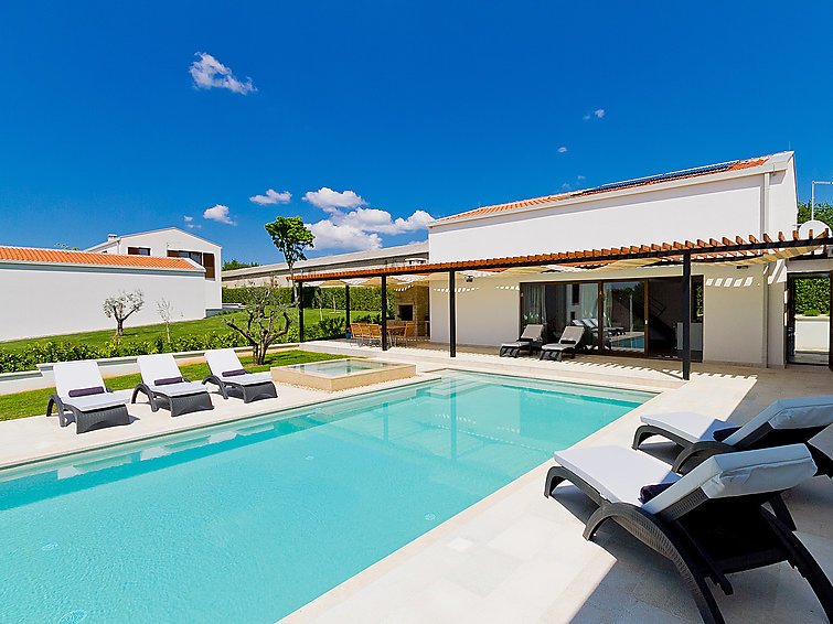 4-huoneen huvila, 210 m2. Kauniisti sisustettu: olo/ruokailuhuone, satelliitti TV (litteänäyttö), ilmastointi. Uloskäynti terassille, uima-altaalle. Parvi, 1 vuodesohva (140 cm, pituus 200 cm), satelliitti TV (litteänäyttö), stereosoitin ja DVD. 1 huone, 1 kapea parisänky (180 cm, pituus 200 cm), kylpy/bidet/WC ja ilmastointi. Uloskäynti terassille, uima-altaalle. 1 huone, 2 vuodetta (90 cm, pituus 200 cm), kylpy/bidet/WC ja ilmastointi. Uloskäynti terassille, uima-altaalle. 1 huone, 1 kapea parisänky (180 cm, pituus 200 cm), suihku/bidet/WC ja ilmastointi. Uloskäynti terassille, uima-altaalle. Avoin keittiö (uuni, astianpesukone, 4 keraaminen keittotaso, mikroaaltouuni, pakastin). Suihku/WC. Lämmitys. Terassi 40 m2. Terassikalusteita, lepotuoleja, varasto. Näkymä uima-altaalle. Käytettävissä: tallelokero, syöttötuoli, lastensänky. Internet ( Langaton LAN [WLAN] , ilmainen). 1 lemmikki/koira sallittu…. Lue lisää »