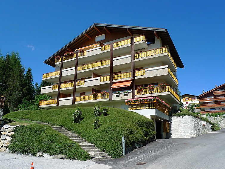 2-huoneen huoneisto, 60 m2, 2. kerroksessa. Yksinkertaisesti sisustettu: olo/ruokailuhuone, 1 vuodesohva kahdelle (140 cm, pituus 185 cm), kaapeli TV (litteänäyttö). 1 huone, 2 vuodetta. Uloskäynti parvekkeelle, suunta länteen. Keittiö (4 keittolevyä, uuni, astianpesukone, kahvinkeitin). Kylpy/WC, erillinen WC. Parveke 6 m2, länteen. Parvekekalusteita, lepotuoleja (1). Erittäin kaunis näkymä vuorille, laaksoon ja puutarhaan. Käytettävissä: silitysrauta, hiustenkuivaaja. Autotalli n:o 31, korkeus 195 cm. Huomioitavaa: savuton huoneisto…. Lue lisää »