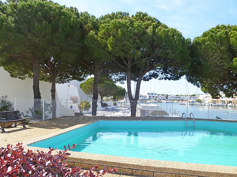2-huoneen huoneisto, 40 m2, 3 tasossa, 1. kerroksessa. Sisääntulo. Erillinen WC. Yläkerrassa: olo/ruokailuhuone, 1 vuodesohva kahdelle ja TV. Keittiönurkkaus (3 keittolevyä, pienoisuuni, mikroaaltouuni). 2. kerroksessa: 1 huone, 1 kapea parisänky. Suihku. Terassi 7 m2, lounaaseen. Terassikalusteita. Näkymä uima-altaalle ja satamaan. Käytettävissä: pesukone. Autotalli. Enintään 1 lemmikki/koira sallittu…. Lue lisää »