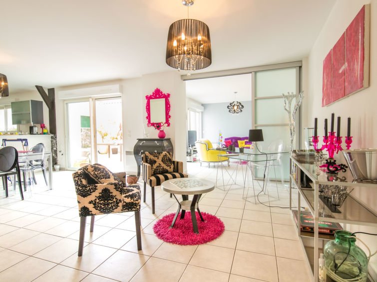 4-huoneen huoneisto, 140 m2, sisääntulokerroksessa. Avara ja vaalea, mukavasti ja kauniisti sisustettu: iso olo/ruokailuhuone, TV (litteänäyttö). Uloskäynti terassille. 1 huone, 1 kapea parisänky (180 cm), suihku ja TV (litteänäyttö). Uloskäynti terassille. 1 huone, 1 kapea parisänky (160 cm). Uloskäynti terassille. 1 huone, 1 ulosvedettävä sänky (2 x 90 cm). Uloskäynti terassille. Avoin keittiö (uuni, astianpesukone, 4 keraaminen keittotaso, mikroaaltouuni, pakastin, kahvinkeitin, Kapselit kahvinkeittimeen (nespresso) lisämaksusta). Kylpyhuone, erillinen WC, kaksoispesuallas. Terassikalusteita, puutarhagrilli. Käytettävissä: pesukone. Internet (  Langaton LAN [WLAN]    , ilmainen). Autotalli. Huomioitavaa: savuton huoneisto…. Lue lisää »