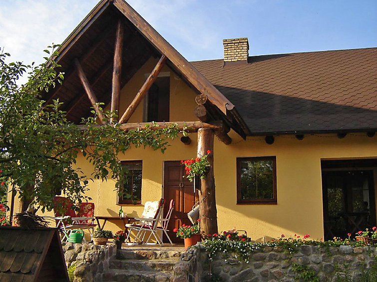 3-huoneen talo, 120 m2, 2 tasossa, osittain viistot katot, maalaistyylisesti ja viihtyisästi sisustettu: avoin olo/makuuhuone, 1 vuodesohva kahdelle, avotakka ja radio. Uloskäynti terassille, puutarhaistumapaikalle. 1 huone, 1 parisänky. Avoin keittiö (uuni, 4 keraaminen keittotaso), ruokapöytä, puu-uuni. Suihku/WC. Kattokerroksessa: 1 avoin iso huone, jossa viisto katto, 4 vuodetta ja satelliitti TV. Suihku/WC. Puulämmitys. Terassi 12 m2. Terassikalusteita, lepotuoleja (8). Näkymä puutarhaan. Käytettävissä: pesukone, hiustenkuivaaja, puut (ilmainen)…. Lue lisää »