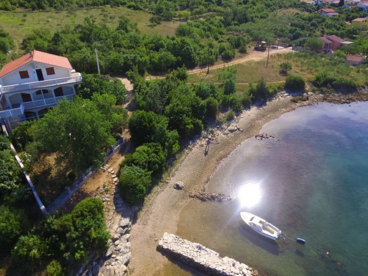 2-huoneen huoneisto, 50 m2, 1. kerroksessa, suunta lounaaseen. Olo/makuuhuone, 1 parisänky (2 x 90 cm, pituus 200 cm), satelliitti TV (litteänäyttö), ilmastointi. Uloskäynti terassille. 1 huone, 1 vuode (90 cm, pituus 200 cm), 1 x 2 kerrossänky (90 cm, pituus 200 cm), tuuletin. Keittiö (4 keittolevyä, uuni, mikroaaltouuni, pakastin, kahvinkeitin), ruokapöytä. Suihku/bidet/WC. Terassi 25 m2, katettu. Terassikalusteita. Kaunis näkymä merelle. Käytettävissä: pesukone…. Lue lisää »