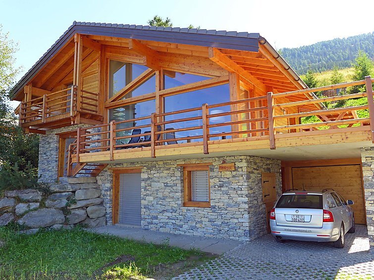 ”Mimique”, 5-huoneen chalet, 180 m2, 3 tasossa. Vaalea, peruskorjattu vuonna 2014, mukavasti sisustettu: olo/ruokailuhuone, panoraamaikkuna, takkakamiina, satelliitti TV, kaapeli TV, CD, stereosoitin ja DVD. Uloskäynti terassille, suunta luoteeseen. 1 huone, 1 kapea parisänky. Uloskäynti terassille, suunta pohjoiseen. Avoin keittiö (uuni, astianpesukone, 4 keraaminen keittotaso, mikroaaltouuni, pakastin, kahvinkeitin, Kapselit kahvinkeittimeen (Nespresso) lisämaksusta). Kylpy/suihku, erillinen WC, kaksoispesuallas. Alemmassa kerroksessa: sisääntulo, erillinen WC, suihku ja kaksoispesuallas. 1 iso huone, 1 kapea parisänky, kaapeli TV ja litteänäyttö. Uloskäynti terassille, suunta pohjoiseen. Sauna. Kattokerroksessa: 1 huone, 1 kapea parisänky. Uloskäynti parvekkeelle, suunta pohjoiseen. 1 huone, 2 vuodetta. Suihku/WC. Terassi 55 m2, länteen ja etelään. Terassikalusteita, puutarhagrilli (liikuteltava). Erittäin kaunis näkymä vuorille ja laaksoon. Käytettävissä: pesukone, kuivausrumpu, sauna, lastensänky. Internet ( Langaton LAN [WLAN] , ilmainen). Pysäköintipaikka (katettu), autotalli. Huomioitavaa: savuton huoneisto…. Lue lisää »