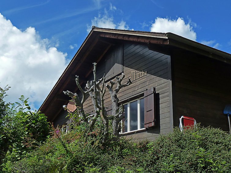 4-huoneen chalet 2 tasossa. Avara, maalaistyylisesti ja viihtyisästi sisustettu: olo/ruokailuhuone, avotakka, satelliitti TV, radio, CD ja DVD. 1 huone, 1 parisänky (2 x 90 cm, pituus 200 cm). Keittiö (uuni, astianpesukone, mikroaaltouuni, kahvinkeitin, Kapselit kahvinkeittimeen (Dolce Gusto) lisämaksusta, raclettegrilli fonduesetti (juusto)). Erillinen WC, kylpy/suihku/WC. Yläkerrassa: jossa viisto katto 2 huonetta, kaikissa huoneissa 2 vuodetta (90 cm, pituus 200 cm). Iso terassi. Terassikalusteita. Ihastuttava panoraamanäkymä vuorille. Käytettävissä: silitysrauta, hiustenkuivaaja, puut (lisämaksu). Internet ( Langaton LAN [WLAN] , ilmainen). Huomioitavaa: soveltuu perheille. Savuton huoneisto…. Lue lisää »