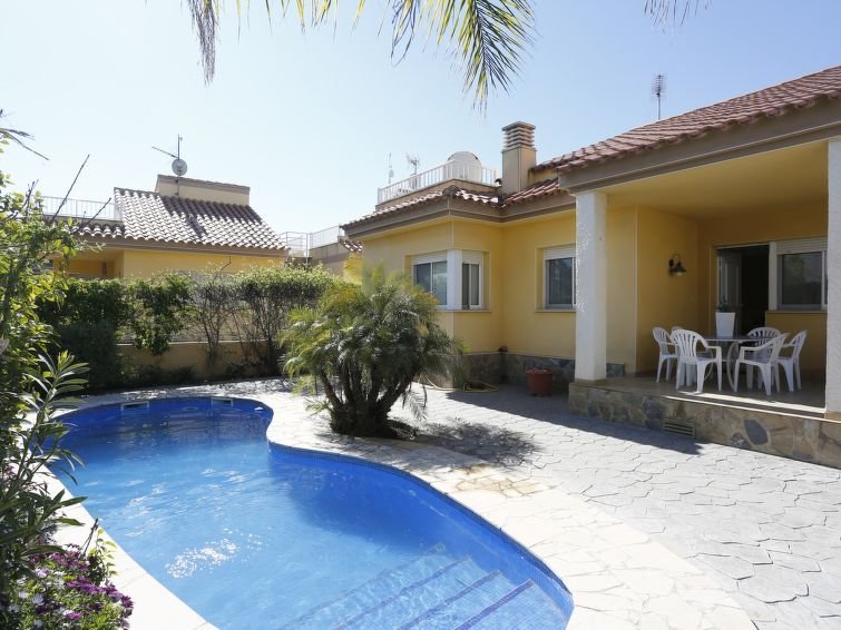 4-huoneen talo. Mukavasti ja viihtyisästi sisustettu: olo/ruokailuhuone, ruokapöytä ja satelliitti TV. Uloskäynti terassille, puutarhaistumapaikalle, uima-altaalle. 1 huone, 1 kapea parisänky ja kylpy/bidet/WC. 2 huonetta, kaikissa huoneissa 2 vuodetta. Avoin keittiö (uuni, 4 keraaminen keittotaso, mikroaaltouuni, kahvinkeitin). Kylpy/bidet/WC, suihku/WC. Ilmastointilaite. Terassikalusteita, lepotuoleja, loggia (katos). Uima-altaalle. Käytettävissä: pesukone. Internet (  Langaton LAN [WLAN]    , ilmainen). Pysäköintipaikka talon vieressä. Soveltuu perheille. 2 lemmikkiä/koiraa sallittu…. Lue lisää »