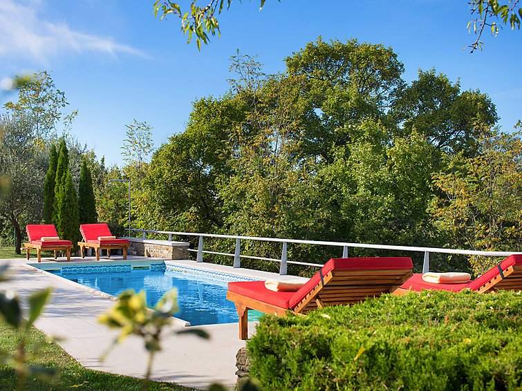 3-huoneen huvila, 140 m2, 2 tasossa. Mukavasti ja maalaistyylisesti sisustettu: olo/ruokailuhuone, avotakka, satelliitti TV, stereosoitin ja ilmastointi. Uloskäynti puutarhaan. Avoin keittiö (4 keittolevyä, uuni, astianpesukone, mikroaaltouuni, pakastin). Uloskäynti puutarhaan. Suihku/WC, erillinen WC. Yläkerrassa: 1 huone, 1 kapea parisänky (160 cm, pituus 190 cm). 1 huone, 2 vuodetta (80 cm, pituus 190 cm). Terassi 20 m2, katettu. Terassikalusteita, lepotuoleja. Ihastuttava näkymä uima-altaalle, puutarhaan ja maaseudulle. Käytettävissä: Internet ( Langaton LAN [WLAN] , ilmainen). 1 lemmikki/koira sallittu. Lomatalo on sisustettu tyypilliseen istrialaiseen maalaistyyliin. Puutarhaan ja altaalle pääsee myös toisen kerroksen suurelta, katetulta terassilta…. Lue lisää »