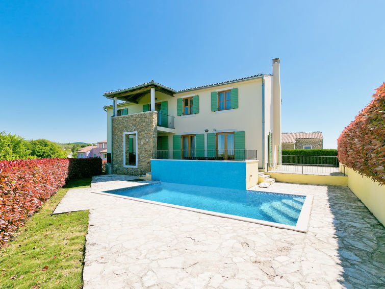 5-huoneen huvila, 148 m2, 2 tasossa. Kauniisti ja viihtyisästi sisustettu: olo/ruokailuhuone, satelliitti TV (litteänäyttö), DVD ja ilmastointi. Uloskäynti terassille. 1 huone, 1 kapea parisänky (160 cm, pituus 200 cm), suihku/WC ja ilmastointi. Uloskäynti terassille. Avoin keittiö (uuni, astianpesukone, 4 keraaminen keittotaso, mikroaaltouuni, pakastin, kahvinkeitin). Erillinen WC. Yläkerrassa: 1 huone, 1 kapea parisänky (160 cm, pituus 200 cm), suihku/WC ja ilmastointi. 1 huone, 2 vuodetta (80 cm, pituus 200 cm), ilmastointi. 1 huone, 2 vuodetta (80 cm, pituus 200 cm), ilmastointi. Uloskäynti terassille. Kylpy/suihku/WC. Terassi 15 m2, katettu, 2 terassia 8 m2, katettu. Terassikalusteita, puutarhagrilli (liikuteltava), lepotuoleja. Erittäin kaunis näkymä uima-altaalle ja maaseudulle. Käytettävissä: tallelokero, hiustenkuivaaja. Internet (  Langaton LAN [WLAN]    , ilmainen)…. Lue lisää »