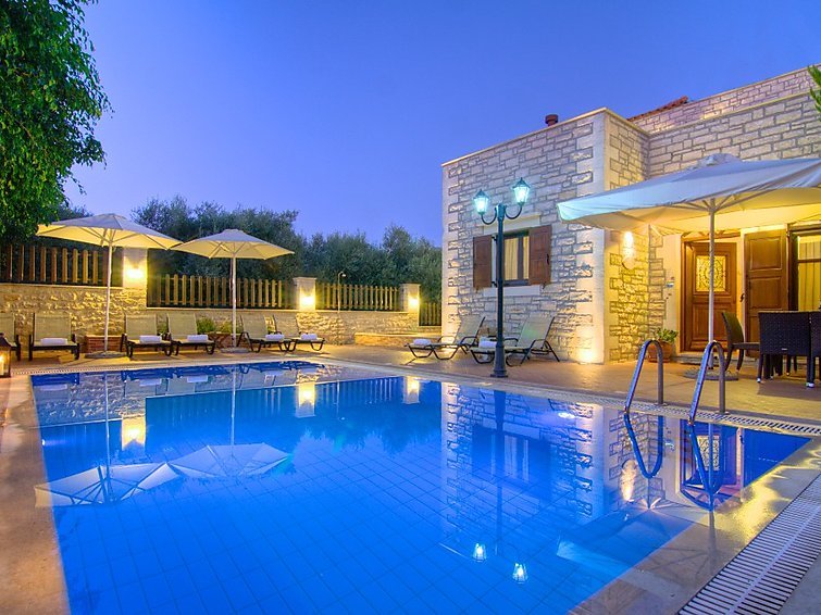 ”Myrtia”, 4-huoneen huvila, 150 m2, 2 tasossa. Kauniisti ja tyylikkäästi sisustettu: olo/ruokailuhuone, avotakka, ruokapöytä ja satelliitti TV (litteänäyttö), radio, CD, stereosoitin, DVD ja ilmastointi. Uloskäynti puutarhaistumapaikalle, uima-altaalle. 1 kahden hengen huone, 1 parisänky ja ilmastointi. 1 kahden hengen huone, 2 vuodetta ja ilmastointi. Keittiö/oleskelutila (4 keittolevyä, uuni, astianpesukone, mikroaaltouuni, pakastin, grilli, kahvinkeitin, vedenkeitin), ruokapöytä. Kylpyhuone. Sähkölämmitys. Yläkerrassa: 1 kahden hengen huone, 1 parisänky ja ilmastointi. Uloskäynti parvekkeelle. 1 kahden hengen huone, panoraamaikkuna, 2 vuodetta ja ilmastointi. Kylpy/WC. Lepotuoleja. Kaunis näkymä vuorille, maaseudulle ja paikkakunnalle. Käytettävissä: hiustenkuivaaja, puut (lisämaksu)…. Lue lisää »