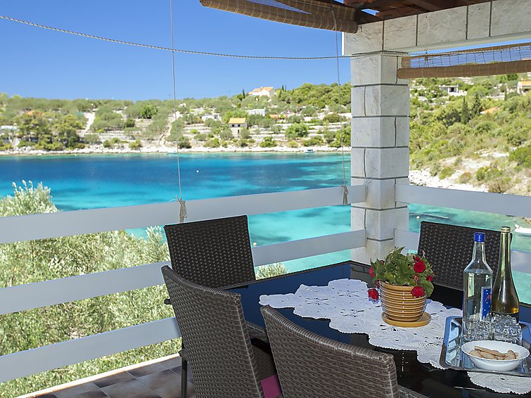 7-huoneen talo, 120 m2, 2 tasossa, 1. kerroksessa. Olo/ruokailuhuone, 17 m2, 1 vuodesohva, avotakka ja satelliitti TV. 1 huone, 1 kapea parisänky (160 cm, pituus 200 cm). 1 huone, 2 vuodetta (100 cm, pituus 200 cm). Avoin keittiö (4 keittolevyä, uuni, pakastin). Suihku, erillinen WC. Yläkerrassa: (ulkoportaat) olo/ruokailuhuone, 26 m2, 1 vuodesohva, satelliitti TV, CD, stereosoitin, DVD ja ilmastointi. Uloskäynti terassille. 1 huone, 1 kapea parisänky (160 cm, pituus 200 cm), ilmastointi. Uloskäynti parvekkeelle. 2 huonetta, kaikissa huoneissa, 1 kapea parisänky (160 cm, pituus 190 cm), ilmastointi. Avoin keittiö (4 keittolevyä, uuni, astianpesukone, pakastin). 2 suihkua/WC:tä. Terassi 25 m2 osittain katettu, 2 terassia 18 m2, katettu. Terassikalusteita, puutarhagrilli, lepotuoleja (6). Ihastuttava näkymä merelle. Käytettävissä: pesukone. Internet ( Langaton LAN [WLAN] , ilmainen)…. Lue lisää »