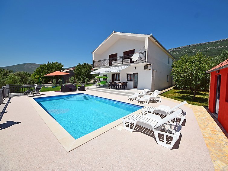 3-huoneen talo, 110 m2, sisääntulokerroksessa, suunta etelään. Olo/ruokailuhuone, 50 m2, 1 vuodesohva kahdelle (160 cm, pituus 190 cm), satelliitti TV (litteänäyttö), ilmastointi. Uloskäynti terassille. 2 huonetta, kaikissa huoneissa, 1 parisänky (2 x 90 cm, pituus 200 cm). Avoin keittiö (uuni, astianpesukone, 4 keraaminen keittotaso, mikroaaltouuni, pakastin, kahvinkeitin). Suihku/WC, kylpy/suihku/WC. Terassi 30 m2 osittain katettu. Terassikalusteita, lepotuoleja (5). Etäinen näkymä merelle. Käytettävissä: lastensänky, hiustenkuivaaja. Internet ( Langaton LAN [WLAN] , ilmainen)…. Lue lisää »