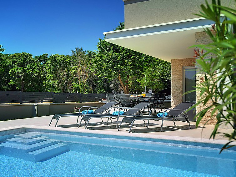 5-huoneen talo, 235 m2, 2 tasossa. Olohuone, 1 vuodesohva kahdelle (140 cm, pituus 200 cm), avotakka ja satelliitti TV (litteänäyttö), ilmastointi. Uloskäynti terassille. Ruokailuhuone. Uloskäynti terassille, uima-altaalle. Avoin keittiö (uuni, astianpesukone, 4 keraaminen keittotaso, mikroaaltouuni, pakastin, kahvinkeitin). Suihku/WC. Yläkerrassa: 1 huone, 1 kapea parisänky (180 cm, pituus 200 cm), kylpy/WC ja ilmastointi. 2 huonetta, kaikissa huoneissa, 1 kapea parisänky (180 cm, pituus 200 cm), suihku/WC ja ilmastointi. 1 huone, 2 vuodetta (90 cm, pituus 200 cm), ilmastointi. Terassi 50 m2 osittain katettu. Terassikalusteita, puutarhagrilli (liikuteltava), lepotuoleja. Näkymä uima-altaalle. Käytettävissä: syöttötuoli. Internet ( Langaton LAN [WLAN] , ilmainen). 1 lemmikki/koira sallittu…. Lue lisää »