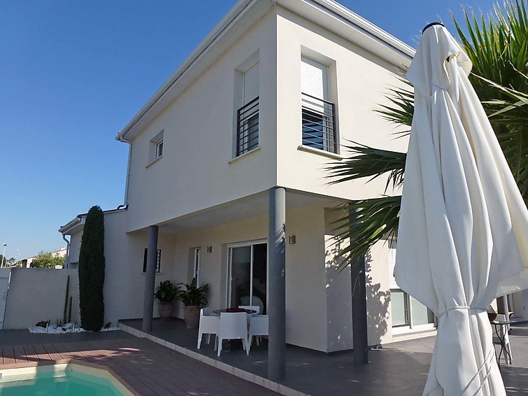 4-huoneen talo, 130 m2, 2 tasossa. Kauniisti sisustettu: olo/ruokailuhuone, TV ja stereosoitin. 1 huone, 1 kapea parisänky. Keittiö (uuni, astianpesukone, 3 induktioliesi, mikroaaltouuni, pakastin). Suihku/WC. Ilmastointilaite. Yläkerrassa: 1 huone, 1 kapea parisänky (160 cm). 1 huone, 2 vuodetta. Kylpy/WC. Ilmastointilaite. Terassi 80 m2, etelään ja länteen. Terassikalusteita, puutarhagrilli, lepotuoleja (4). Käytettävissä: pesukone. Autotalli…. Lue lisää »