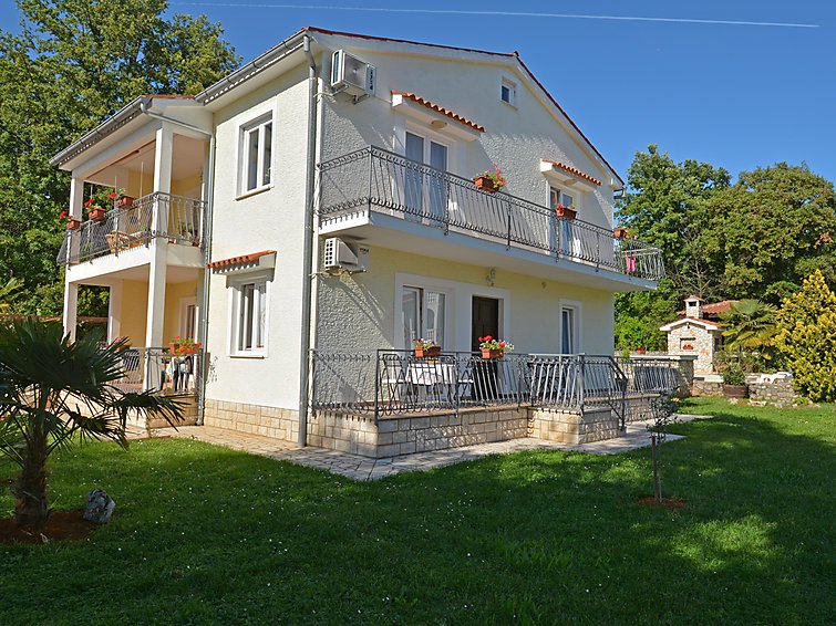7-huoneen talo, 140 m2, 2 tasossa: olo/ruokailuhuone, 1 vuodesohva kahdelle, pienoiskeittiö, satelliitti TV ja ilmastointi. Uloskäynti terassille. 1 huone, 1 parisänky (2 x 80 cm, pituus 190 cm). Olo/ruokailuhuone, 1 vuodesohva kahdelle, pienoiskeittiö, satelliitti TV ja ilmastointi. Uloskäynti terassille. 1 huone, 1 kapea parisänky (140 cm, pituus 190 cm). Ruokailuhuone, satelliitti TV. Uloskäynti terassille, uima-altaalle. Avoin keittiö (4 keittolevyä, uuni, mikroaaltouuni). 3 suihkua/WC:tä. Yläkerrassa: läpikulkuhuone, 1 kapea parisänky (140 cm, pituus 190 cm), satelliitti TV ja ilmastointi. Uloskäynti terassille. 1 huone, 2 vuodetta (80 cm, pituus 190 cm). Avoin keittiö (2 keittolevyä, astianpesukone, mikroaaltouuni). Suihku/WC. Ilmastointilaite (lisämaksu). 2 terassia 5 m2, katettu, terassi 8 m2 osittain katettu. Terassikalusteita, lepotuoleja. Näkymä puutarhaan…. Lue lisää »