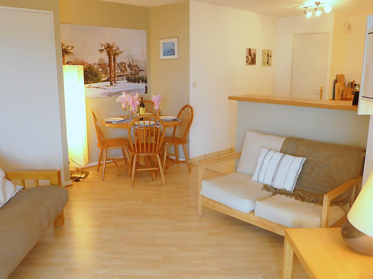 ”Orchidée”, 3-huoneen huoneisto, 62 m2, 2. kerroksessa, suunta lounaaseen. Käytännöllisesti sisustettu: olo/ruokailuhuone, ruokapöytä ja TV (litteänäyttö). Uloskäynti parvekkeelle. 1 huone, 1 kapea parisänky (1 x 140 cm, pituus 190 cm). Uloskäynti parvekkeelle. 1 huone, 2 vuodetta (90 cm, pituus 190 cm). Avoin keittiö (4 keittolevyä, uuni, mikroaaltouuni, kahvinkeitin). Kylpyhuone, erillinen WC. Sähkölämmitys. Parkettilattiat. Pieni parveke 8 m2. Parvekekalusteita. Kaunis näkymä puutarhaan. Huomioitavaa: 1 pieni lemmikki/koira sallittu. TV vain FR…. Lue lisää »