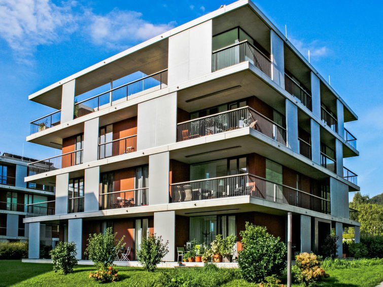 3-huoneen huoneisto, 78 m2, 2. kerroksessa. Erittäin mukavasti ja hyvällä maulla sisustettu: avoin olo/ruokailuhuone, panoraamaikkuna, kaapeli TV (litteänäyttö), DVD ja DVD-kokoelma käytössä. Uloskäynti parvekkeelle. 1 kahden hengen huone. 1 huone, 1 kapea parisänky (160 cm). Avoin keittiö (uuni, astianpesukone, 4 keraaminen keittotaso, mikroaaltouuni), baari. Kylpyhuone, erillinen WC. Parkettilattiat. Parveke 20 m2, terassi 30 m2, puutarhaistumapaikka 400 m2. Parvekekalusteita, lepotuoleja (2). Kaunis näkymä järvelle, vuorille ja maaseudulle. Käytettävissä: pesukone, silitysrauta, hiustenkuivaaja. Internet (  Langaton LAN [WLAN]    , ilmainen). Autotalli n:o 111 tontilla. Huomioitavaa: savuton huoneisto…. Lue lisää »