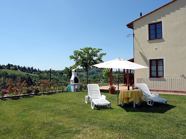 ”Olivo”, 3-huoneen rivitalo, 120 m2, 2 tasossa, sisääntulokerroksessa. Avara, täysin peruskorjattu, kauniisti ja maalaistyylisesti sisustettu: olohuone, 1 vuodesohva kahdelle ja satelliitti TV. Uloskäynti puutarhaan. Keittiö (4 keittolevyä, uuni, astianpesukone), ruokapöytä. Suihku/bidet/WC. Lämmitys (lisämaksu). Yläkerrassa: 1 kahden hengen huone. 1 huone, 2 vuodetta. Suihku/WC. Terassi, puutarha, nurmikko. Terassikalusteita, puutarhagrilli, lepotuoleja, varasto. Erittäin kaunis panoraamanäkymä maaseudulle. Pysäköintipaikka (aidattu)…. Lue lisää »