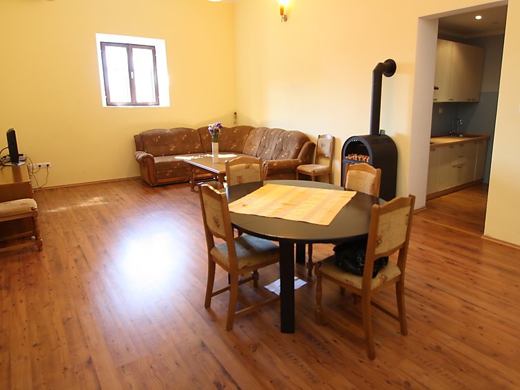 3-huoneen huoneisto, 70 m2, 2 tasossa, korotetussa sisääntulokerroksessa, suunta länteen. Olo/ruokailuhuone, 30 m2, 1 vuodesohva (100 cm, pituus 190 cm), satelliitti TV (litteänäyttö), ilmastointi. Avoin keittiö (2 keittolevyä, pakastin). Suihku/WC. Yläkerrassa: läpikulkuhuone, 1 kapea parisänky (160 cm, pituus 200 cm), ilmastointi. 1 huone, 1 kapea parisänky (160 cm, pituus 200 cm). Käytettävissä: Internet ( Langaton LAN [WLAN] , ilmainen)…. Lue lisää »