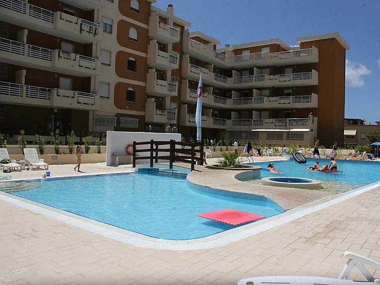 2-room apartment ”Bilocale per 4 persone”, for 4 people, 35 m2, on the upper floor, comfortable furnishings. Living/dining room with satellite TV and dining-table. Smoking not allowed. Internet (Wireless LAN [WLAN]). 1 double sofa bed. Sleeping room with 2 single beds. Kitchenette with 3 hot plates, dining table and fridge. Shower/WC and bidet. Balcony 12 m2, terrace furniture. Other equipment: safe…. Lue lisää »
