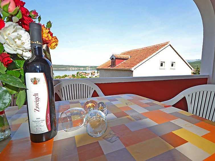 2-huoneen huoneisto, 40 m2, 1. kerroksessa. Olo/ruokailuhuone, 2 vuodesohvaa, satelliitti TV ja ilmastointi. Uloskäynti terassille. 1 huone, 1 parisänky (180 cm, pituus 200 cm). Avoin keittiö (4 keittolevyä, uuni, pakastin). Suihku/WC. Ilmastointilaite (lisämaksu). Terassi 10 m2 osittain katettu. Terassikalusteita. Näkymä merelle. Käytettävissä: Internet ( Langaton LAN [WLAN] , ilmainen). 1 lemmikki/koira sallittu…. Lue lisää »