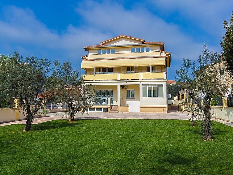 4-room apartment ”MEDULIN”, for 6 people, 110 m2 on 1st floor, simple and comfortable furnishings. Living/dining room with satellite TV and dining-table. Smoking allowed. Internet (Wireless LAN [WLAN]). Sleeping room with 1 double bed. Sleeping room with 1 double bed. Sleeping room with 2 single beds. Kitchen-/living room with 4 hot plates, micro wave, oven, dishwasher, fridge and deep freezer. Bath/WC and shower/WC. Balcony 26 m2, terrace 25 m2, terrace furniture. Other equipment: washing machine…. Lue lisää »