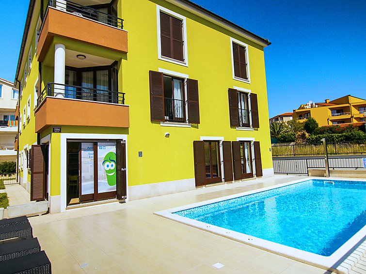 3-huoneen huoneisto, 90 m2, 1. kerroksessa. Olo/ruokailuhuone, satelliitti TV (litteänäyttö), ilmastointi. Uloskäynti terassille. 1 huone, 1 parisänky (2 x 80 cm, pituus 200 cm), ilmastointi. 1 huone, 2 vuodetta (90 cm, pituus 200 cm), ilmastointi. Avoin keittiö (4 keittolevyä, uuni, mikroaaltouuni, pakastin). Kylpy/WC, suihku/WC, erillinen WC. Terassi 6 m2. Terassikalusteita. Vähäinen näkymä merelle. Käytettävissä: pesukone, tallelokero. Internet ( Langaton LAN [WLAN] , ilmainen). 1 pieni lemmikki/koira sallittu…. Lue lisää »