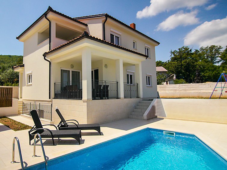 5-huoneen talo, 162 m2, 2 tasossa: olo/ruokailuhuone, satelliitti TV (litteänäyttö), stereosoitin ja ilmastointi. Uloskäynti terassille. 1 huone, 1 parisänky (2 x 80 cm, pituus 200 cm), suihku/WC ja ilmastointi. Avoin keittiö (4 keittolevyä, uuni, astianpesukone, mikroaaltouuni, pakastin). Yläkerrassa: 1 huone, 1 parisänky (2 x 80 cm, pituus 200 cm), suihku/WC ja ilmastointi. 1 huone, 2 vuodetta (80 cm, pituus 200 cm), suihku/WC ja ilmastointi. Uloskäynti terassille. 1 huone, 2 vuodetta (80 cm, pituus 200 cm), suihku/WC ja ilmastointi. Terassi 10 m2, katettu, terassi 7 m2, katettu. Terassikalusteita, lepotuoleja. Näkymä merelle ja uima-altaalle. Käytettävissä: tallelokero. Internet ( Langaton LAN [WLAN] , ilmainen). 1 lemmikki/koira sallittu…. Lue lisää »