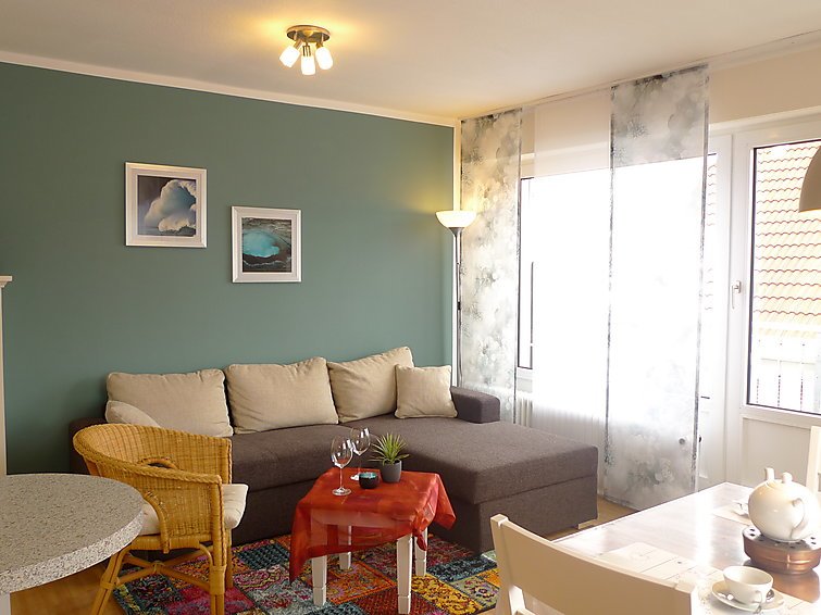 ”Sonneck”, 3-huoneen huoneisto, 65 m2, 2 tasossa, 1. kerroksessa. Osittain viistot katot, kauniisti ja viihtyisästi sisustettu: olo/ruokailuhuone, satelliitti TV, CD ja DVD. Uloskäynti parvekkeelle. 1 kahden hengen huone. Keittiönurkkaus (4 keittolevyä, pienoisuuni, kahvinkeitin), ruokapöytä. Suihku/WC. Kattokerroksessa: 1 huone, jossa viisto katto, 2 vuodetta. Parveke 6 m2. Parvekekalusteita. Käytettävissä: syöttötuoli (lisämaksu). Internet ( Langaton LAN [WLAN] , ilmainen). Enintään 1 pieni lemmikki/koira sallittu…. Lue lisää »