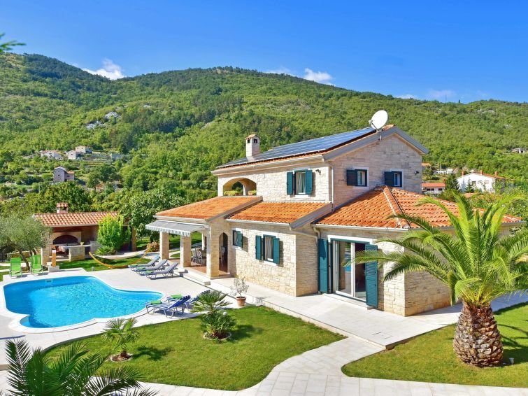 7-huoneen huvila, 390 m2, 2 tasossa, suunta etelään. Erittäin kauniisti ja viihtyisästi sisustettu: olo/ruokailuhuone, 43 m2, avotakka, pienoiskeittiö ja satelliitti TV (litteänäyttö), ilmastointi. Uloskäynti terassille. 1 huone, 1 kapea parisänky (160 cm, pituus 200 cm). Olo/ruokailuhuone, 27 m2, avotakka ja satelliitti TV (litteänäyttö). Uloskäynti uima-altaalle. 1 huone, 1 kapea parisänky (160 cm, pituus 200 cm), suihku/WC. Avoin keittiö (uuni, astianpesukone, 4 keraaminen keittotaso, mikroaaltouuni, pakastin, kahvinkeitin). Suihku/bidet/WC, erillinen WC. Lattialämmitys. Yläkerrassa: sisääntulo, ilmastointi. 1 huone, 1 kapea parisänky (160 cm, pituus 200 cm), satelliitti TV (litteänäyttö). Uloskäynti terassille. 1 huone, 1 vuode (80 cm, pituus 190 cm), 1 kapea parisänky (160 cm, pituus 200 cm), satelliitti TV (litteänäyttö). Uloskäynti terassille. 1 huone, jossa viisto katto, kattokorkeus 195 – 250 cm, 1 kapea parisänky (160 cm, pituus 200 cm), satelliitti TV (litteänäyttö). Avoin parvi, jossa viisto katto, kattokorkeus 195 – 250 cm, 1 vuode (80 cm, pituus 190 cm), ilmastointi. Suihku/WC, suihku/bidet/WC. Lattialämmitys. Terassi 30 m2, katettu, terassi 14 m2, katettu. Terassikalusteita, puutarhagrilli (liikuteltava), lepotuoleja. Näkymä uima-altaalle. Käytettävissä: tallelokero. Internet ( Langaton LAN [WLAN] , ilmainen). Huvila, jossa olo-/ruokailuhuone, avokeittiö ja 1 makuuhuone pohjakerroksessa sekä 2 makuuhuonetta toisessa kerroksessa. Pohjakerroksessa: sauna, poreallas, lepotuoleja, suihku, satelliitti-tv. Toisessa huvilassa olo-/ruokailuhuone, avokeittiö, makuuhuone pohjakerroksessa, makuuhuone ja avoin parvi toisessa kerroksessa…. Lue lisää »