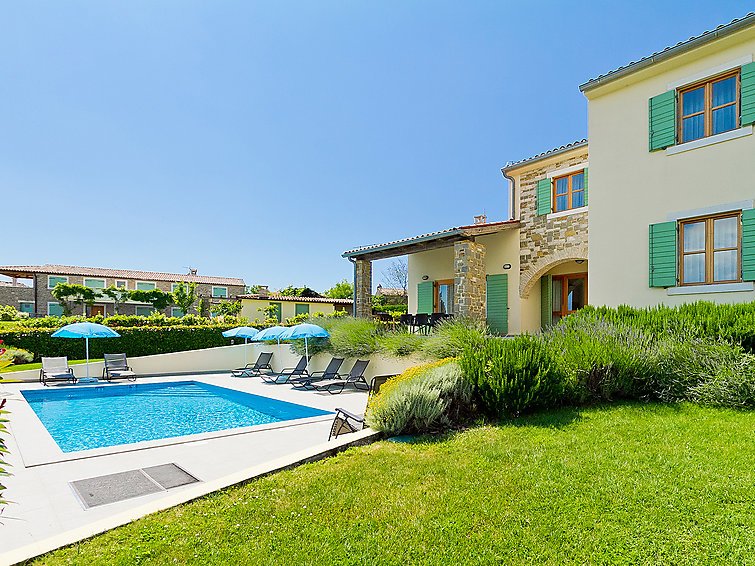 5-huoneen huvila, 200 m2, 2 tasossa. Olo/ruokailuhuone, 70 m2, satelliitti TV (litteänäyttö), DVD ja ilmastointi. Uloskäynti terassille. 1 huone, 1 kapea parisänky (160 cm, pituus 200 cm), suihku/bidet/WC ja ilmastointi. Avoin keittiö (uuni, astianpesukone, 4 keraaminen keittotaso, mikroaaltouuni, pakastin). Erillinen WC. Yläkerrassa: 1 huone, 1 kapea parisänky (160 cm, pituus 200 cm), suihku/bidet/WC ja ilmastointi. 2 huonetta, kaikissa huoneissa 2 vuodetta (80 cm, pituus 200 cm), ilmastointi. Terassi 20 m2 osittain katettu, terassi 10 m2. Terassikalusteita, lepotuoleja. Näkymä uima-altaalle ja maaseudulle. Käytettävissä: tallelokero. Internet ( Langaton LAN [WLAN] , ilmainen)…. Lue lisää »