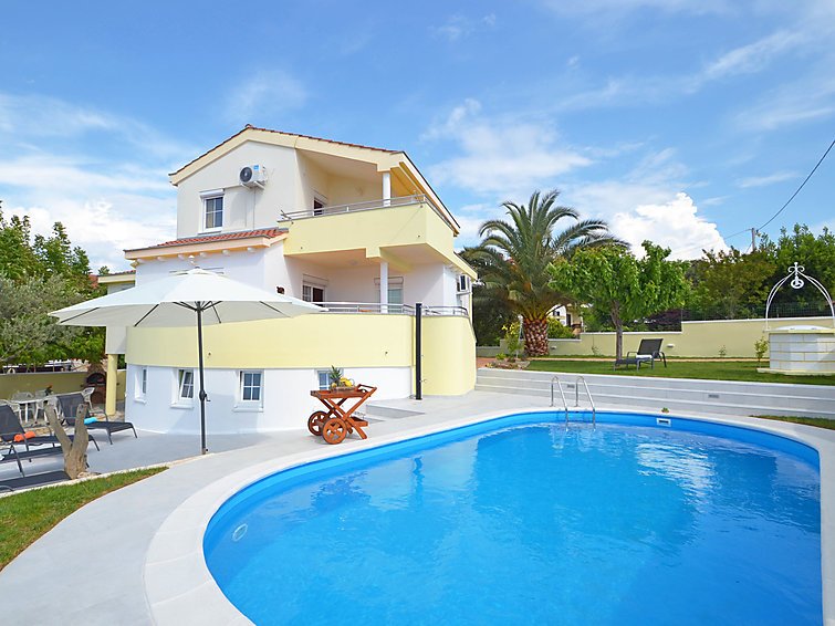 5-huoneen talo, 200 m2, 2 tasossa, suunta luoteeseen. Olo/ruokailuhuone, 45 m2, satelliitti TV (litteänäyttö), ilmastointi. Uloskäynti terassille. 1 huone, 1 kapea parisänky (180 cm, pituus 200 cm). Avoin keittiö (4 keittolevyä, uuni, astianpesukone, mikroaaltouuni, pakastin, kahvinkeitin). Suihku/WC. Yläkerrassa: 1 huone, 1 kapea parisänky (160 cm, pituus 200 cm), satelliitti TV. Uloskäynti terassille. 2 huonetta, kaikissa huoneissa, 1 kapea parisänky (140 cm, pituus 200 cm), satelliitti TV. Kylpy/suihku/WC, poreamme. Terassi 20 m2, katettu, terassi 8 m2. Terassikalusteita, lepotuoleja. Näkymä uima-altaalle. Käytettävissä: hiustenkuivaaja. Internet ( Langaton LAN [WLAN] , ilmainen)…. Lue lisää »