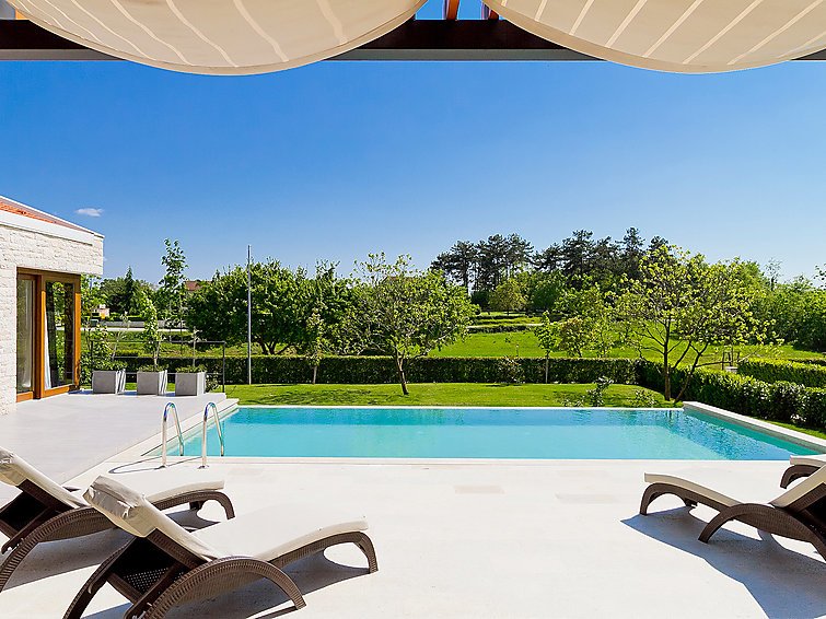 4-huoneen huvila, 210 m2. Kauniisti sisustettu: olo/ruokailuhuone, avotakka, satelliitti TV ja ilmastointi. Uloskäynti terassille, uima-altaalle. Parvi, 1 vuodesohva (120 cm, pituus 190 cm), satelliitti TV, stereosoitin ja DVD. 2 huonetta, kaikissa huoneissa, 1 kapea parisänky (180 cm, pituus 200 cm), kylpy/bidet/WC ja ilmastointi. Uloskäynti terassille, uima-altaalle. 1 huone, 1 kapea parisänky (180 cm, pituus 200 cm), suihku/bidet/WC ja ilmastointi. Uloskäynti terassille, uima-altaalle. Avoin keittiö (uuni, astianpesukone, 4 keraaminen keittotaso, mikroaaltouuni, pakastin). Suihku/WC. Lämmitys. Lepotuoleja, varasto. Käytettävissä: tallelokero, syöttötuoli, lastensänky. Internet ( Langaton LAN [WLAN] , ilmainen). 1 lemmikki/koira sallittu…. Lue lisää »