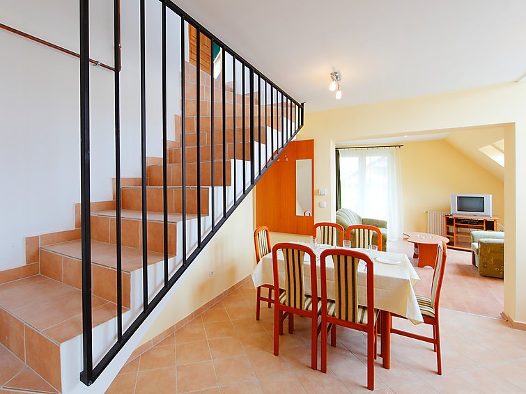 ”Thermal A203”, 3-huoneen huoneisto, 70 m2, 2. kerroksessa. Avara ja vaalea, mukavasti sisustettu: olo/makuuhuone, 1 vuodesohva kahdelle ja satelliitti TV. Uloskäynti parvekkeelle. 1 huone, 1 kapea parisänky. Avoin keittiö (2 keittolevyä, mikroaaltouuni), ruokapöytä. Kylpyhuone, erillinen WC. Kattokerroksessa: sisääntulo. Uloskäynti terassille. 1 huone, 1 kapea parisänky. Pieni parveke, iso terassi 12 m2. Terassikalusteita. Näkymä paikkakunnalle. Pysäköintipaikka talon vieressä. 1 lemmikki/koira sallittu…. Lue lisää »