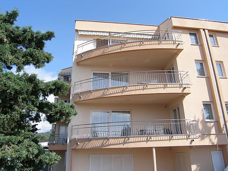 2-huoneen huoneisto 3. kerroksessa, suunta länteen. Kauniisti ja uudenaikaisesti sisustettu: olo/ruokailuhuone, 29 m2, 2 vuodesohvaa (80 cm, pituus 200 cm), satelliitti TV, DVD ja ilmastointi. Uloskäynti parvekkeelle. 1 huone, 1 kapea parisänky (160 cm), ilmastointi. Uloskäynti parvekkeelle. Avoin keittiö (4 keittolevyä, uuni). Suihku/WC. Parveke 6 m2. Terassikalusteita. Kaunis näkymä merelle. Käytettävissä: hiustenkuivaaja. 1 lemmikki/koira sallittu…. Lue lisää »
