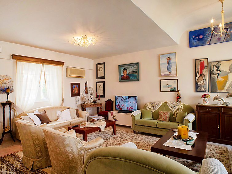 ”Villa Dionysos”, 3-huoneen huvila, 180 m2, 3 tasossa. Avara ja vaalea, erittäin mukavasti ja paljon puuta sisustettu: olohuone, satelliitti TV, litteänäyttö, CD, DVD ja ilmastointi. Uloskäynti puutarhaan. Ruokailuhuone, ruokapöytä. Keittiö (uuni, astianpesukone, mikroaaltouuni, pakastin, kahvinkeitin, vedenkeitin). Yläkerrassa: 2 kahden hengen huonetta, kaikissa huoneissa, 1 parisänky. Uloskäynti parvekkeelle. Kylpyhuone. 2. kerroksessa: 1 kahden hengen huone, 1 parisänky, kylpyhuone, suihku/WC ja satelliitti TV. Puutarhaistumapaikka, puutarha. Parvekekalusteita, puutarhagrilli. Ihastuttava panoraamanäkymä merelle, uima-altaalle, puutarhaan ja maaseudulle. Käytettävissä: pesukone, silitysrauta, syöttötuoli, hiustenkuivaaja. Internet ( Langaton LAN [WLAN] ). Autotalli. Soveltuu perheille…. Lue lisää »