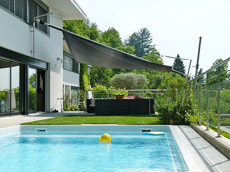 5-huoneen huvila 2 tasossa, suunta lounaaseen. Avara ja vaalea, mukavasti ja uudenaikaisesti sisustettu: iso olo/ruokailuhuone, takkakamiina, ruokapöytä, satelliitti TV, litteänäyttö, radio ja stereosoitin. Uloskäynti terassille, puutarhaistumapaikalle. Avoin keittiö (uuni, astianpesukone, 5 induktioliesi, kahvinkeitin, Kapselit kahvinkeittimeen (Nespresso) lisämaksusta, vedenkeitin). Erillinen WC. Lattialämmitys. Yläkerrassa: 1 kahden hengen huone, 1 parisänky (2 x 90 cm, pituus 200 cm), suihku/WC. 1 kahden hengen huone, 2 parisänkyä (2 x 80 cm, pituus 200 cm). 2 lastenhuonetta, kaikissa huoneissa, 2 x 2 kerrossänky (90 cm, pituus 200 cm). Iso terassi. Terassikalusteita, lepotuoleja (4), istumapaikka. Ihastuttava panoraamanäkymä vuorille, maaseudulle ja paikkakunnalle. Käytettävissä: syöttötuoli, lastensänky alle 2 vuotiaalle, hiustenkuivaaja. Huomioitavaa: savuton talo…. Lue lisää »