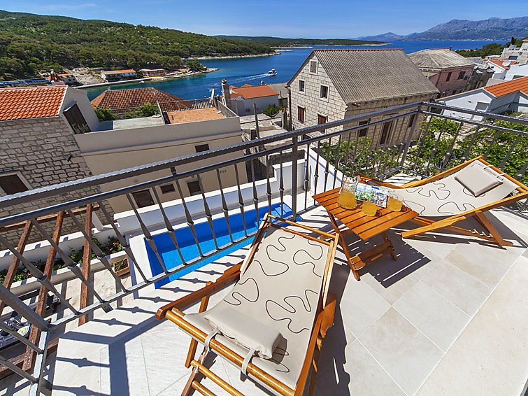 6-huoneen talo, 200 m2, 3 tasossa. Olo/ruokailuhuone, satelliitti TV (litteänäyttö), DVD. Uloskäynti terassille. Avoin keittiö (uuni, astianpesukone, 4 keraaminen keittotaso, mikroaaltouuni, pakastin), ilmastointi. Erillinen WC. Alemmassa kerroksessa: (ulkoportaat) 1 huone, 1 kapea parisänky (180 cm, pituus 200 cm), suihku/WC ja ilmastointi. Uloskäynti terassille. Erillinen WC. Yläkerrassa: 1 huone, 1 parisänky (2 x 90 cm, pituus 200 cm), suihku/WC ja satelliitti TV (litteänäyttö), ilmastointi. Uloskäynti parvekkeelle. 1 huone, 1 parisänky (2 x 90 cm, pituus 200 cm), suihku/WC ja satelliitti TV (litteänäyttö), ilmastointi. 2. kerroksessa: 2 huonetta, kaikissa huoneissa, 1 parisänky (2 x 90 cm, pituus 200 cm), suihku/WC ja satelliitti TV (litteänäyttö), ilmastointi. Uloskäynti parvekkeelle. 2 parveketta 7 m2, parveke 6 m2, terassi 15 m2. Terassikalusteita, lepotuoleja. Kaunis näkymä merelle, uima-altaalle ja paikkakunnalle. Käytettävissä: tallelokero. Internet ( Langaton LAN [WLAN] , ilmainen). Huomioitavaa: yksi kahdenhengenmakuuhuone on huoneiston ulkopuolella…. Lue lisää »