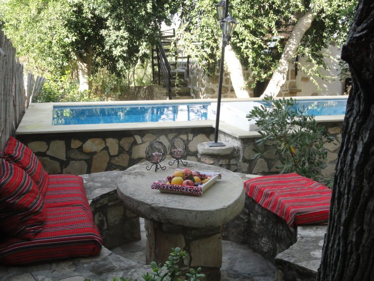 ”Villa lithos”, 1-huoneen huvila, 60 m2. Maalaistyylisesti ja paljon puuta sisustettu: olo/ruokailuhuone, 2 vuodesohvaa, avotakka, ruokapöytä, satelliitti TV, litteänäyttö, CD, DVD ja ilmastointi. Uloskäynti puutarhaan, terassille, uima-altaalle. 1 kahden hengen huone, 1 parisänky ja ilmastointi. Keittiö (4 keittolevyä, kahvinkeitin). Kylpyhuone. Terassikalusteita, puutarhagrilli, lepotuoleja. Erittäin kaunis näkymä vuorille, uima-altaalle, puutarhaan ja maaseudulle. Käytettävissä: pesukone, tallelokero, silitysrauta, syöttötuoli, lastensänky alle 2 vuotiaalle. Pysäköintipaikka. Soveltuu perheille…. Lue lisää »