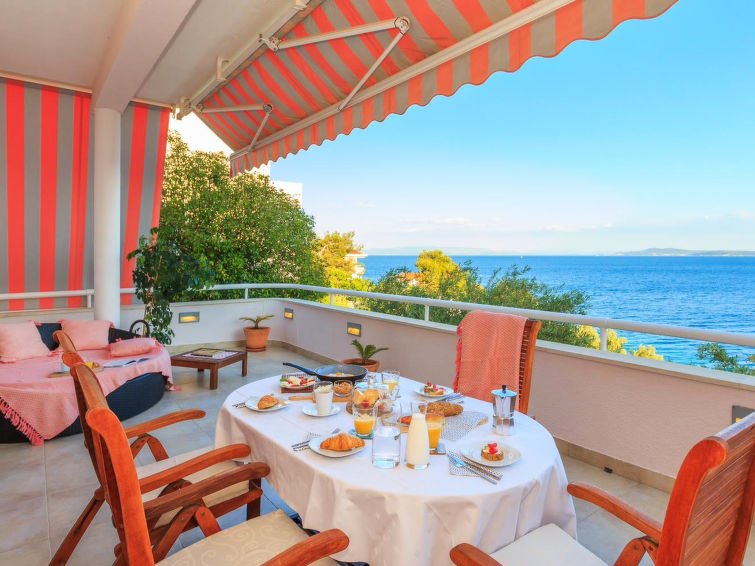 4-huoneen huoneisto, 82 m2, 1. kerroksessa, suunta etelään. Mukavasti ja hyvällä maulla sisustettu: olo/ruokailuhuone, 30 m2, satelliitti TV, CD, DVD ja ilmastointi. Uloskäynti terassille. 1 huone, 1 kapea parisänky (160 cm). 1 huone, 1 kapea parisänky (140 cm). 1 huone, 1 vuodesohva (100 cm). Avoin keittiö (4 keittolevyä, uuni, astianpesukone). Suihku/bidet/WC. Iso terassi 31 m2, katettu. Terassikalusteita. Ihastuttava näkymä merelle. Käytettävissä: Internet ( Langaton LAN [WLAN] , ilmainen). Pysäköintipaikka (aidattu). Huomioitavaa: 1 lemmikki/koira sallittu…. Lue lisää »